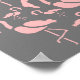 Um design divertido de pássaro flamingo rosa pastel em um padrão. Bando bonito do tema dos flamingos. Rosa e cinzas com uma vibração retrorreflectora. Design de arte original única