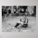 Foto antiga de uma jovem bonito na praia vestindo biquíni 1920, segurando um gambá que não parece feliz. Belo quadro de moda 1920.