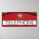 Traga um toque de Inglaterra para a sua vida com esta imagem que captura a parte superior de uma cabine telefônica vermelha britânica clássica. Excelente para uma casa, bar, restaurante, caverna de homem ou agrupamento decorativo de paredes.