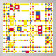 Uma interpretação digital da composição de Piet Mondrian de 1943. Isso difere na medida em que segue rigidamente a uma grade fixa que não está no original.