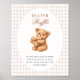 Poster Brown Gingham Teddy Bear Neutral Baby Shower Paper