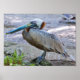 Pelicano castanho (Pelecanus occidentalis) A menor das oito espécies de pelicanos pelicanos pelicanos, adultos e marrons, tem corpo acastanhado, com barriga mais escura e cabeça e pescoço brancos. Durante a época de reprodução, a parte de trás do pescoço torna-se castanha profunda e aparece uma mancha amarela na base da parte da frente do pescoço. Os olhos são muito azuis com olhos cor-de-rosa. Fotografado no Condado de Citrus, Flórida.