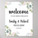 Você pode receber seus convidados para o seu casamento com nossa poster de Folhagem Abundante. Esta poster é verde-botânica de cor aquosa e folhas de eucalipto, com "bem-vindos a nossa felicidade para sempre". Seus nomes e data de casamento em um tipo de caligrafia.