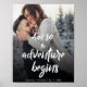 Brush Font "Adventure começa" Poster de boas-vindas. Uma forma excelente de dar as boas-vindas aos convidados do casamento. Esta poster de Foto de Boas-vindas ao Nosso Casamento tem a foto do casal junto com a data do casamento e " ENTÃO A AVENTURA COMEÇA " escrito em uma elegante letra de pincel. Personalize o poster alterando a foto e os nomes da noiva e do noivo. Para mais personalização, entre em contato comigo em mypaperlove2021@gmail.com