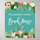 Poster da Casa Floral Tropical de Praia Tropical de Pincel Moderna com Flamingo Rosa
