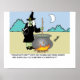 Design de desenho engraçado sobre uma bruxa preparando seu pinto mágico. Cartoon de Colemantoons (Ron Coleman).
