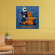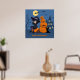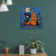 Poster Bruxa de Halloween, Gato Negro e Abóboras