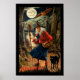 Decorem sua parede com um fantástico poster de Halloween que apresenta uma bruxa caminhando com seu gato e coruja numa noite iluminada pela lua.