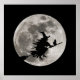 Póster bruxa voadora com uma lua brilhante atrás dela