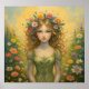 Esta poster de baleia apresenta uma doce e jovem bruxa e silenciosa explorando um jardim de flores secreto que ela acabou de descobrir. Terminado em um impressão de pintura a óleo.