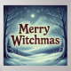 Esta poster de whimsical apresenta uma cena de inverno elegante e acolhedora logo após uma bela queda de neve e as saudações alegres da Feliz Witchmas, uma brincadeira divertida com palavras que Pagans e Witches tanto podem estar familiarizados. Desejando a todos na comunidade um Feliz Feriado de inverno. Terminado em um impressão de tinta a óleo.