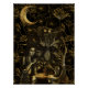 Veja esta composição de bruxas e bruxaria gótica — elementos ouros sobre fundo preto com um padrão de flor de lótus.