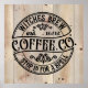 Witches Brew Coffee Co STOP em um Spell Est 1692 antigo símbolo em um fundo de madeira padronizado