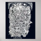 Bruxas e Diabos, por Brian Benson. Este é um desenho de tinta do tamanho B5 que fiz em 1994. O título é tirado do nome de uma peça de Albert Ayler. A imagem mostra um rosto em perfil: a cabeça contém três bruxas e várias faces monstruosas. Clique em 'Personalizar' para alterar a cor de fundo.