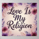 Este poster espiritual apresenta um gráfico com tema floral com flores roxas e cor-de-rosa molduras o elegante roteiro: "Amor é Minha Religião", simbolizando o amor como uma crença guiante e espiritual. Terminado como um impressão de arte mestiço.