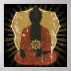A silhueta Buda senta-se de pernas cruzadas em roupão de laranja escuro meditando com a Roda Dharma em sua palma! O escudo de fundo de meio tom cria um poderoso e pacífico presente Buda!