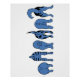 Uma fila de 6 cachorros azuis mostrando seus bumbuns bonitos.