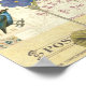 © Alain Pelletier/Wild Apple. A imagem mostra um buquê antigo de flores azuis com aves e borboletas. Um carimbo, um postal, algum texto e outros itens também podem ser vistos na imagem.