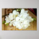 Buquê de freesia branca num trabalho de arte de madeira feito à mão. Estas eram as minhas flores. Eu tirei esta fotografia em abril de 2016.