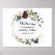 Este poster de casamento floral e verde é perfeito para um casamento no inverno. O elegante design apresenta marinho de aquarela, cor-de-rosa-pincelada e flores de sombra de vinho com detalhes artísticos lápis. Faça desta poster com o nome da noiva e do noivo, e a data do casamento.