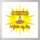 Os amantes do Burrito vão gostar desta design divertida com um sombrero e um sol brilhante e as palavras - Burritos brilham o meu dia. Faz um presente de excelente.