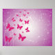 Borboletas cor-de-rosa cercadas por estrelas e espirais leves, parecem estar voando para o espaço. Perfeito para qualquer quarto de meninas.