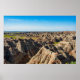 O Parque Nacional das Badlands parece pisar em outro planeta. Bordas riscadas torcendo sobem da terra, suas camadas contando uma história milhões de anos no fazer. O contraste entre as formações robustas e erodidas e os luxuosos vales verdes abaixo acrescenta à beleza surreal desta paisagem. Perante esta perspectiva, a vastidão das Badlands estende-se infinitamente em direção ao horizonte, onde grandes distâncias e picos agudos criam um padrão mesmerizador. A luz do ouro do final da tarde traz os ricos vermelhos, castanhos e bronzeamentos nas camadas de rochas, fazer esta uma das mais surpreendentes visões do Centro-Oeste Americano. Se você ama geologia, paisagens abertas e a beleza bruta da natureza, esta peça captura a magia de um dos parques nacionais mais únicos da América.