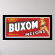 Etiqueta da caixa de fruta da Vintage para Melões de Marca Buxom de Yuma, Arizona.