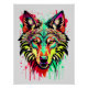 Póster Cabeça Colorida do Lobo - Poster do Lobo - Lobos