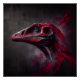 Um retrato abstrato mostrando a cabeça de um dinossauro extinto. Pintado com cores vermelhas e carvões em estilo artístico, esse trabalho de arte cativante se desdobra contra um fundo sombrio e sombrio. Testemunhem a beleza nos misteriosos ecos do passado nesta peça muito cativante.