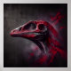 Um retrato abstrato mostrando a cabeça de um dinossauro extinto. Pintado com cores vermelhas e carvões em estilo artístico, esse trabalho de arte cativante se desdobra contra um fundo sombrio e sombrio. Testemunhem a beleza nos misteriosos ecos do passado nesta peça muito cativante.
