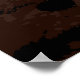 Cabeça de gorila no impressão de poster de fundo personalizado de cor castanho-negra. Um poster de animais selvagens com as cores: preto, castanho, bege.