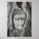 Poster Cabeça de Sandstone de Buda cercada por árvore