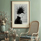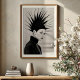 Chame a atenção para esse impressão de arte preto e branco, uma mistura cativante de alta moda e expressão artística. Este retrato impressionante mostra uma mulher adornada com uma extraordinária peça de cabeça escultural que se estourou para fora em pontas agudas e dramáticas, criando uma silhueta inesquecível. Sua pele de porcelana, batom escuro intenso e meticulosamente aplicado, exumenta uma atração enigmática, enquanto seu elegante vestuário preto de colarinho alto, acentuado com uma sutil corrente, aumenta sua presença sofisticada. Criado em um monocromo de alto contraste contra um cenário de luz pristina, esse trabalho de arte enfatiza a forma, a textura e a poderosa qualidade gráfica do design. Perfeito para espaços modernos, estúdios de moda, ou qualquer decoração que busque um toque de elegância única e artista ousada, esta impressão é a escolha ideal para os entusiastas de arte e para aqueles que apreciam o estilo icônico, avant-garde.