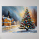 Poster Cabinas de neve festiva com árvore de Natal