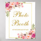 Cartaz de Cabine de Foto de Casamento Floral Rosa Dourado Aquarela