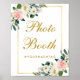 Cartaz de Cabine de Fotografia de Casamento com Aquarela Floral Rosa Branco e Dourado