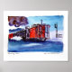 Cor d'água original de Norbert Scanlan, de uma caboose vermelha a seguir a um trem.