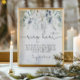 Pôster de caça ao anel de eucalipto de inverno. Sinal de jogo de chá de noiva.