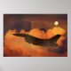Caça Avião F-16 Céu Noturno Nuvens Lua Poster