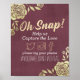 Oh Snap Hashtag de Mídia Social | Modelos de Poster de Decoração de Casamento - Rosas Douradas Modernas e Elegantes com Fundo Vermelho Burgundy Antigo.