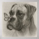 Capture um momento encantador com este Cachorro Boxer com Borboleta - poster do Encontro Gentil. Um traçado de lápis encantador perfeito para amantes de cães e fãs de arte da natureza
