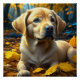 Póster Cachorro Cachorro Jogando Folhas de Queda
