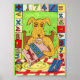 Decorem suas paredes em estilo com este único e colorido mini poster de arte popular. Nesta trabalho de arte engraçada e caprichosa, este cão amarelo esfregado senta-se num conjunto de mesas para jantar contra um fundo primavera verde, devorando um livro-texto de álgebra com gusto, realizando muitos sonhos de um aluno (como na desculpa clássica, "o cão comeu o meu dever de casa"). A cena inteira está cercada por uma borda multicolorida correspondente, com números e símbolos matemáticos. Este pequeno poster divertido faria um presente de excelente para estudantes e professores.