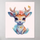 Poster com uma ilustração adorável. Um doce veado com olhos grandes, galhadas e um pequeno amigo da borboleta. design querido.