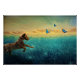 Um cão brincalhão perseguindo borboletas numa noite quente de verão através de um campo pontilhado de pirilampos.