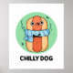 Chilly Dog Funny Chili Hot Dog Pun apresenta um cachorro quente chili fofo enrolado no seu cachecol azul ainda se sentindo frio. Bonito presente para a família e amigos que adoram comida trocadilhos de cachorro-quente.