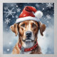 Poster Cachorro Feriado Bonito em Santa Chapéu e Neve