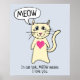 Um gato giro me dizendo. "Em conversa de gatos, MEOW significa que eu te amo." Um adorável gatinho desenhado à mão com uma bolha de fala. Todo texto pode ser personalizado e pode ser alterado ou deixado como está. bege claro com nariz rosa e fundo azul claro que pode ser alterado para qualquer cor. Excelente para crianças, amantes de gatos, donos de gatos, e animais de estimação e amantes de os animais. Para Dia de os namorados, Aniversário ou qualquer Ocasião.