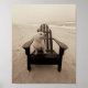 © Jim Dratfield/Wild Apple. Esta imagem vintage mostra um cachorro sentado em uma cadeira ao longo da praia. O vento sopra contra o rosto do cachorro, que parece estar desfrutando da paisagem.